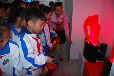 洛陽路第一小學的學生爭相體驗119火災模擬系統