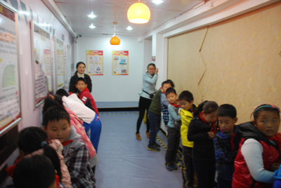 普集路小學(xué)的學(xué)生體驗(yàn)地震平臺(tái)