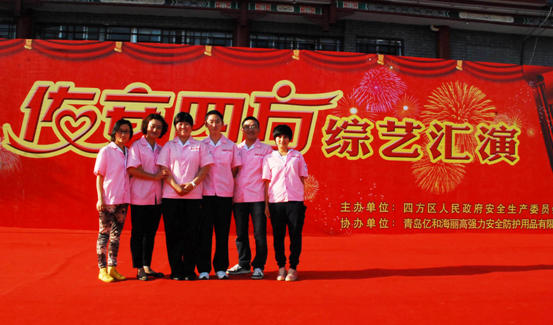 2011年9月23日,由青島市四方區(qū)安監(jiān)局主辦,青島億和海麗高強力安全防護用品有限公司協(xié)辦的“佑安四方”綜藝匯演在四方區(qū)海云廣場成功舉行。本次演出集藝術(shù)性、知識性、娛樂性與群眾性于一體,吸引了上千名觀眾參與。