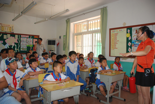 2015年5月13日,海麗雅集團員工走進青島市惜福鎮(zhèn)棉花小學,開展應急安全進校園公益活動,匯集點滴力量,為學生安全一路護航。