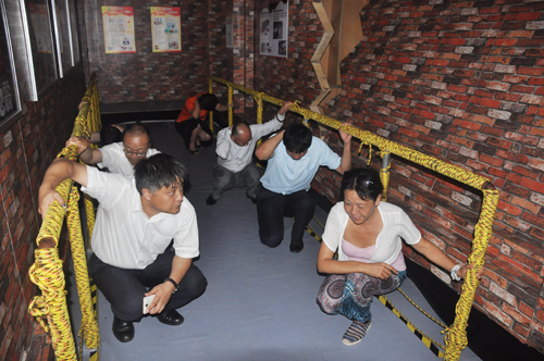 提到應急安全,兩年前人們會聯想到書本、黑板,但是在今天,更多的人脫口而出“青島市應急安全教育培訓中心”及它所孕育的“體驗式”應急安全培訓模式。在海麗雅集團董事長張旭明等領導陪同下,那日蘇副社長一行實地考察了培訓中心高科技“體驗式”互動設備、培訓接待運營模式,并近距離體驗了“地鐵應急逃生”、“3-6級地震”、“暴風雨”等項目,對“體驗式”應急培訓模式在有效提升群眾應急安全知識和技能中發(fā)揮的作用給予肯定。