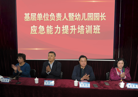 2016年12月20日,青島市首期基層單位負責人暨幼兒園園長應(yīng)急能力提升培訓班在青島市應(yīng)急安全體驗培訓中心舉行開班儀式。青島市人民政府應(yīng)急管理辦公室主任張建剛、青島市教育局安保處處長孫建國出席并發(fā)表致辭。青島市教育局基礎(chǔ)教育處調(diào)研員李世霞、青島市應(yīng)急自救產(chǎn)業(yè)技術(shù)創(chuàng)新戰(zhàn)略聯(lián)盟理事長、青島海麗雅集團董事長張旭明出席開班儀式。