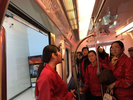 學員在青島市應(yīng)急安全體驗培訓中心進行地鐵應(yīng)急逃生演練