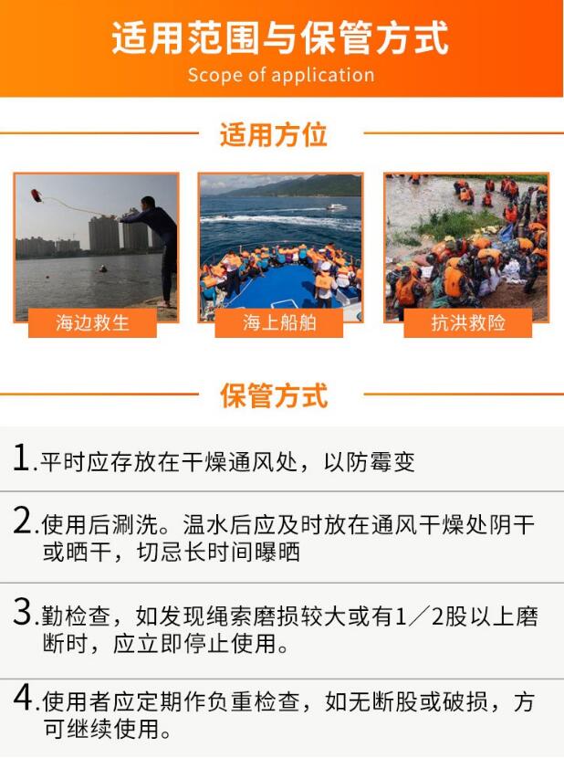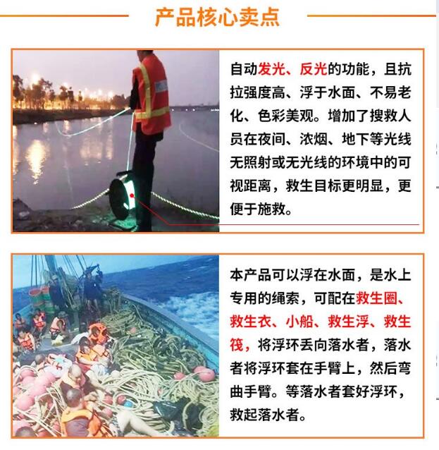抗洪救災水上救援繩不僅可以用于搶險救災時水面救人、自救,還可以進行礦井搜救、火災導向,一繩多用。