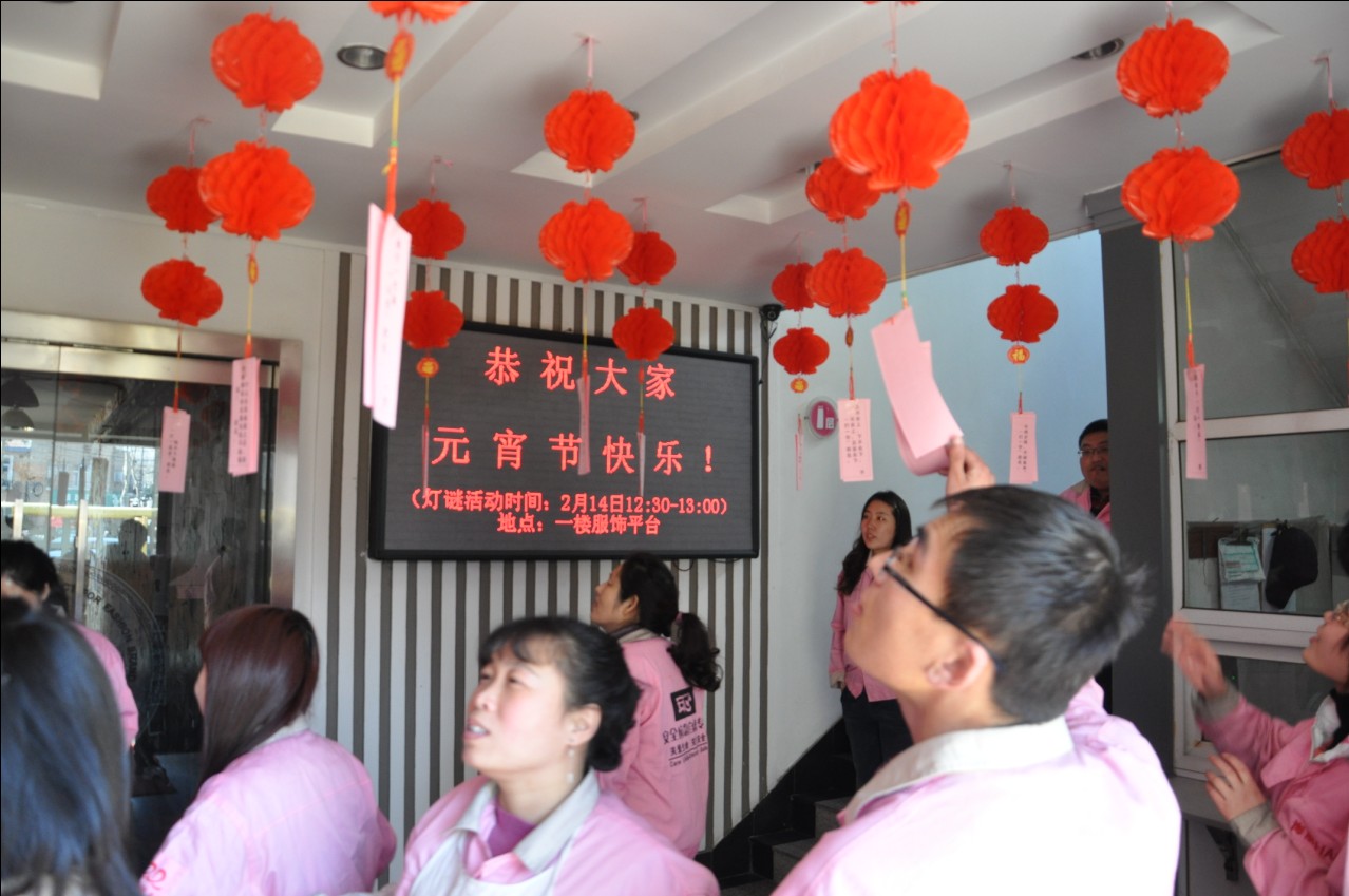 猜燈謎:元宵節當天,為濃厚節日氛圍,公司還組織了猜燈謎活動。活動中,大家積極動腦,爭相表現,各憑自己的才情贏得了一份份精美獎品,并合影留念。