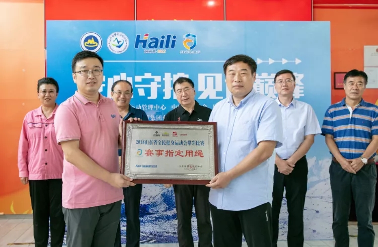 最后,山東省攀巖動員協(xié)會會長安慕雷為海麗雅集團(tuán)授牌--山東省攀巖比賽指定用繩。