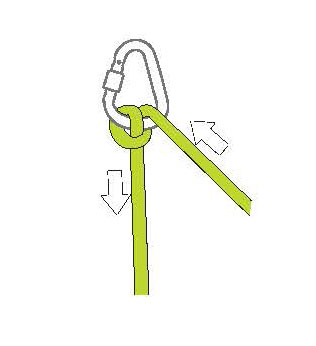 夾在下面較粗的繩子上的結加載。用于下降或救援使用。如果普魯士結不成立,增加環的數量。