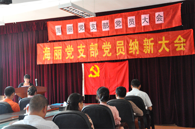9月20日,海麗雅集團召開2014年黨員納新暨預備黨員轉正會議,集團全體黨員及預備黨員、入黨積極分子共28人參加了會議,會議由海麗雅集團黨支部副書記、副總經理崔俊芬主持。