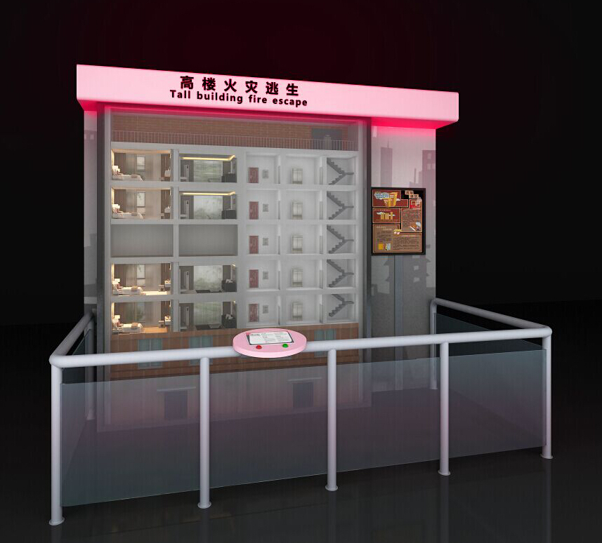 高樓火災逃生裝置展示目的:通過等比縮放模型與多媒體結合演示火災發(fā)生時高樓發(fā)生火災后會出現的問題,以及學習正確逃生方式和注意事項。 高樓火災逃生裝置展示方式:本展項通過計算機控制,等比縮放模型與2×3電視屏幕畫面疊加結合演示火災發(fā)生時高樓發(fā)生火災后會出現的問題,以及學習正確逃生方式和注意事項。