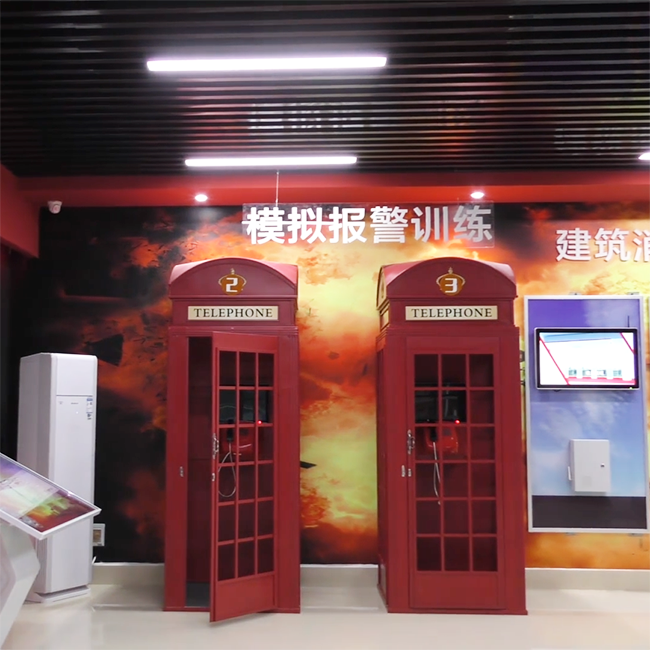 系統由立式定制觸摸一體機組成,搭載模擬訓練報警軟件與改裝電話機。運行流暢并可有效節約展項空間,符合人們日常應用現代電子通訊設備的習慣,且信息明確,操作簡便。